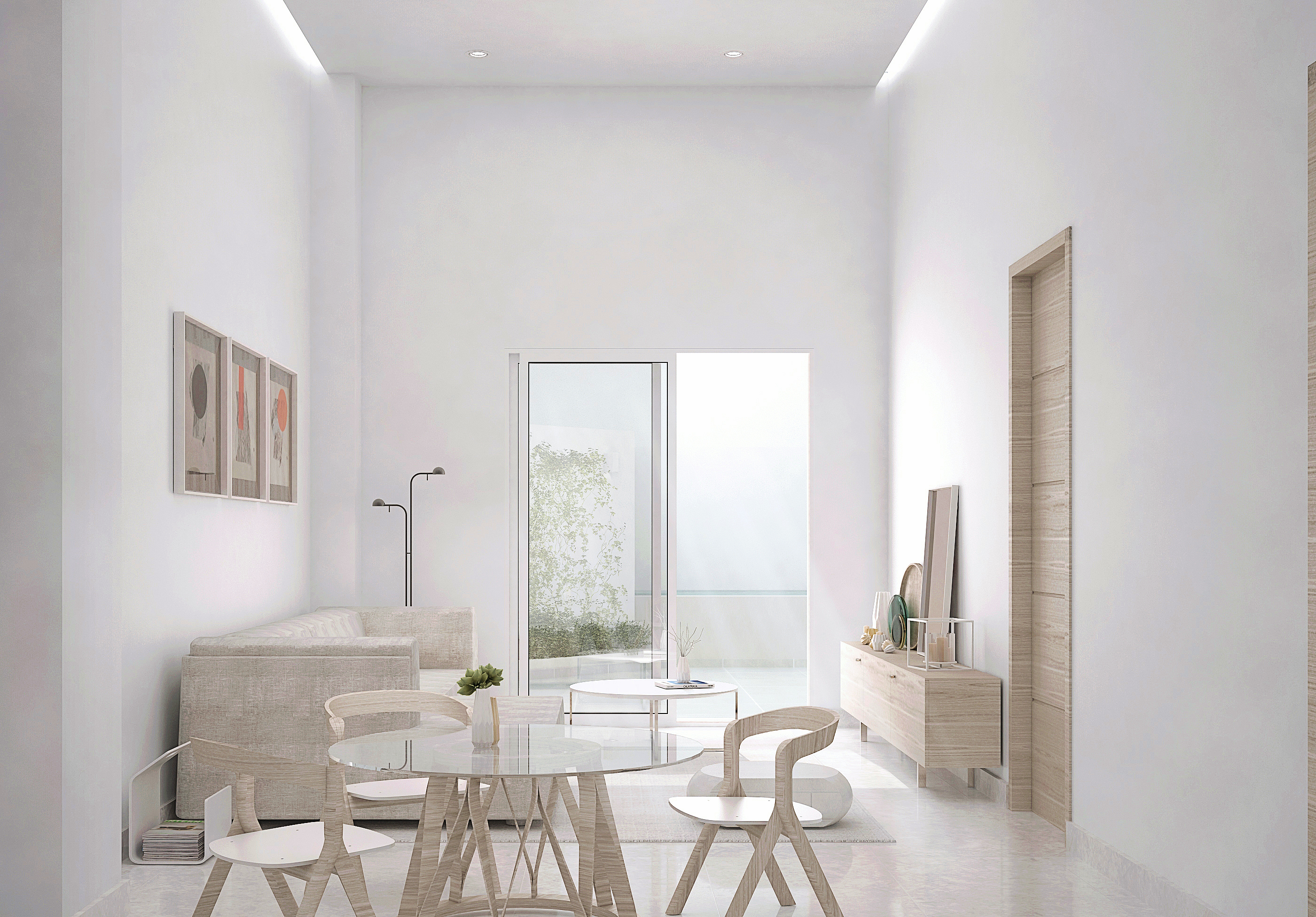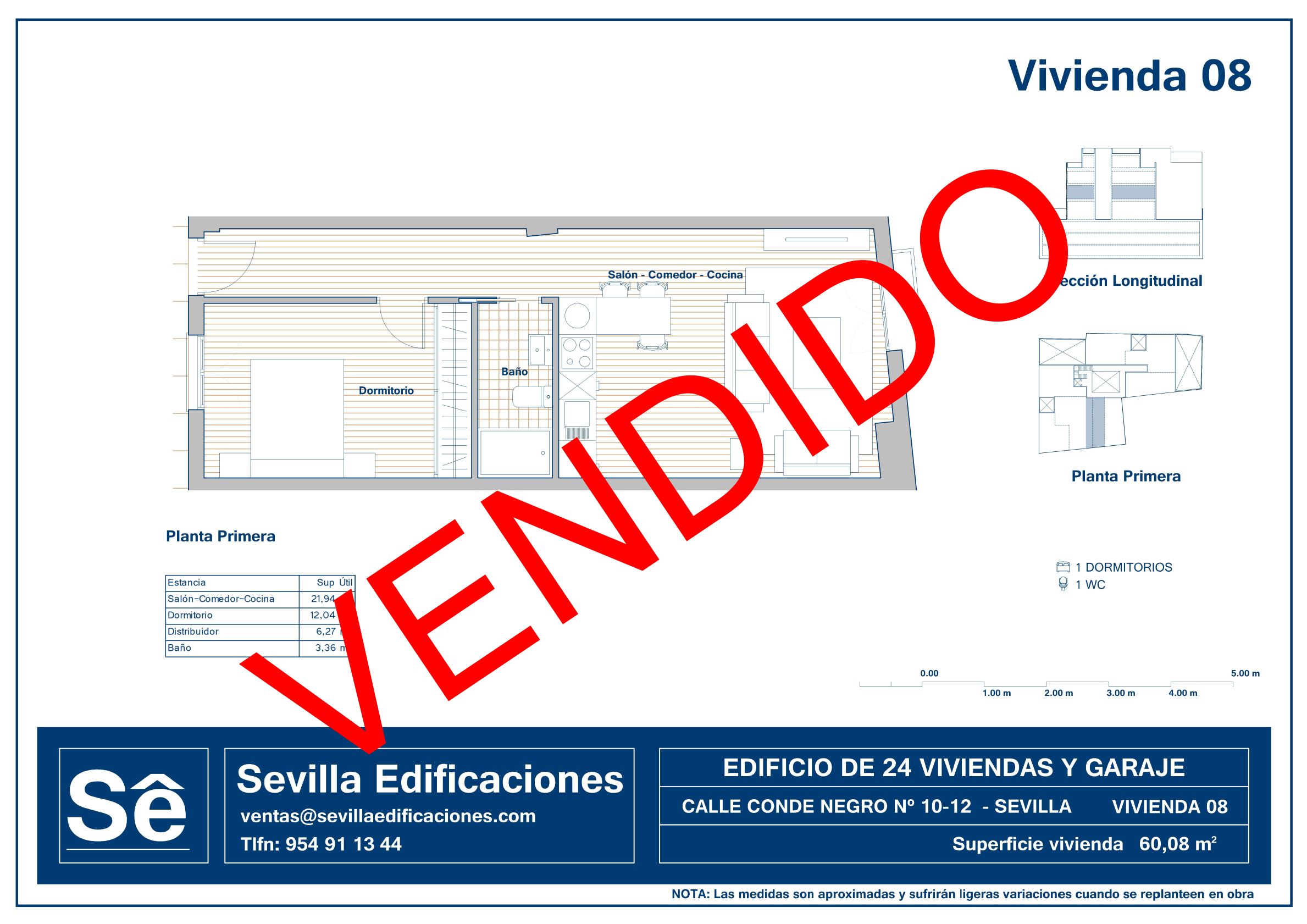 La promoción consta de 24 viviendas de uno (5), dos (15) y tres dormitorios (3), organizadas en tres plantas más ático, y de un garaje de tres plantas con trasteros y más de 60 plazas de aparcamiento. El proyecto se configura en torno a un gran patio central en torno al cual se disponen una serie de patios secundarios encargados de aportar iluminación y ventilación natural a las viviendas.